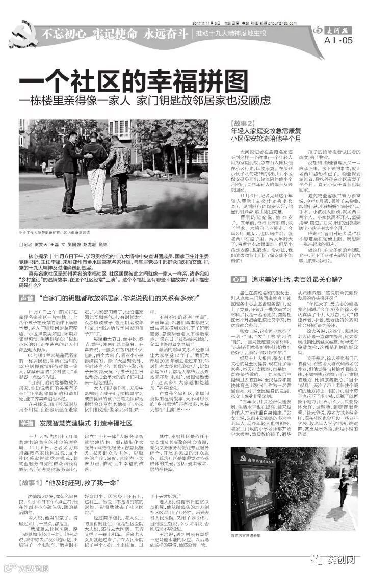 “鑫苑名家社区是郑州著名的幸福社区,社区居民彼此之间就像一家人一样亲,诸多宛如“乡村童话”的温情故事,在这个社区经常“上演”