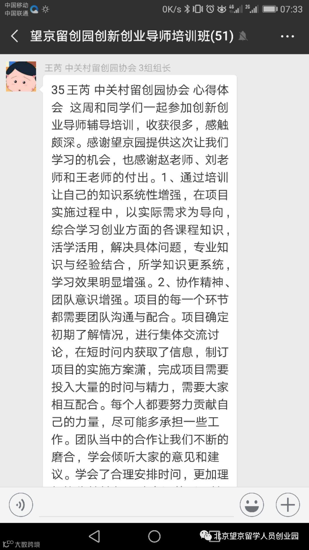 望京留创园在孵企业北京两个黄鹂教育科技有限公司的总经理肖弦弈作为本期培训班的学员代表进行了学习表态发言。