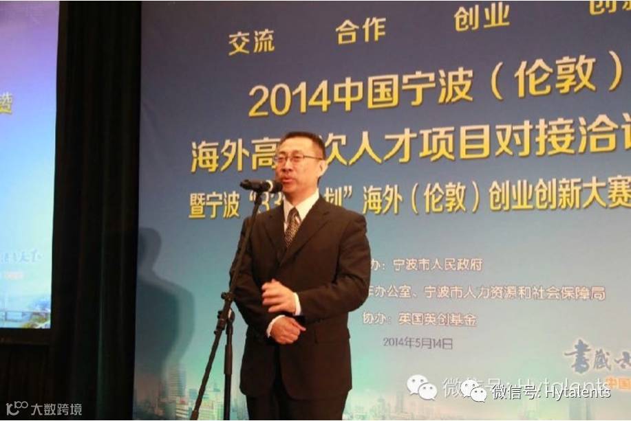 5月14日晚,宁波市人才工作办公室、人力资源和社会保障局携手英国英创基金在伦敦举行了2014宁波(伦敦)海外高层次人才项目对接洽谈会暨首届宁波市“3315计划”海外(伦敦)创业创新大赛启动会,宣传推广宁波市人才政策和人才环境。正如宁波市委常委、市委组织部部长、市委人才工作领导小组副组长杨立平女士在致辞中所说,作为侨乡的宁波求贤若渴,每年政府工作人员都远赴全世界各大城市引进人才,可以说是“望眼欲穿地期待人才”。“宁波帮,响当当”,一开场,中国驻英使馆领事处李辉参赞就对著名侨乡宁波和海外宁波侨胞作了高度赞扬,并对宁波经济社会发展和创业创新的活力给予充分肯定。