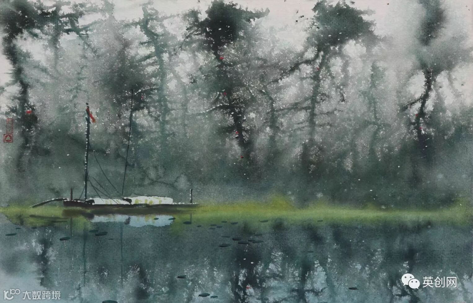 《静泊》是封思孝使用流动水彩画法,并且融合中西美术技法的代表作品。