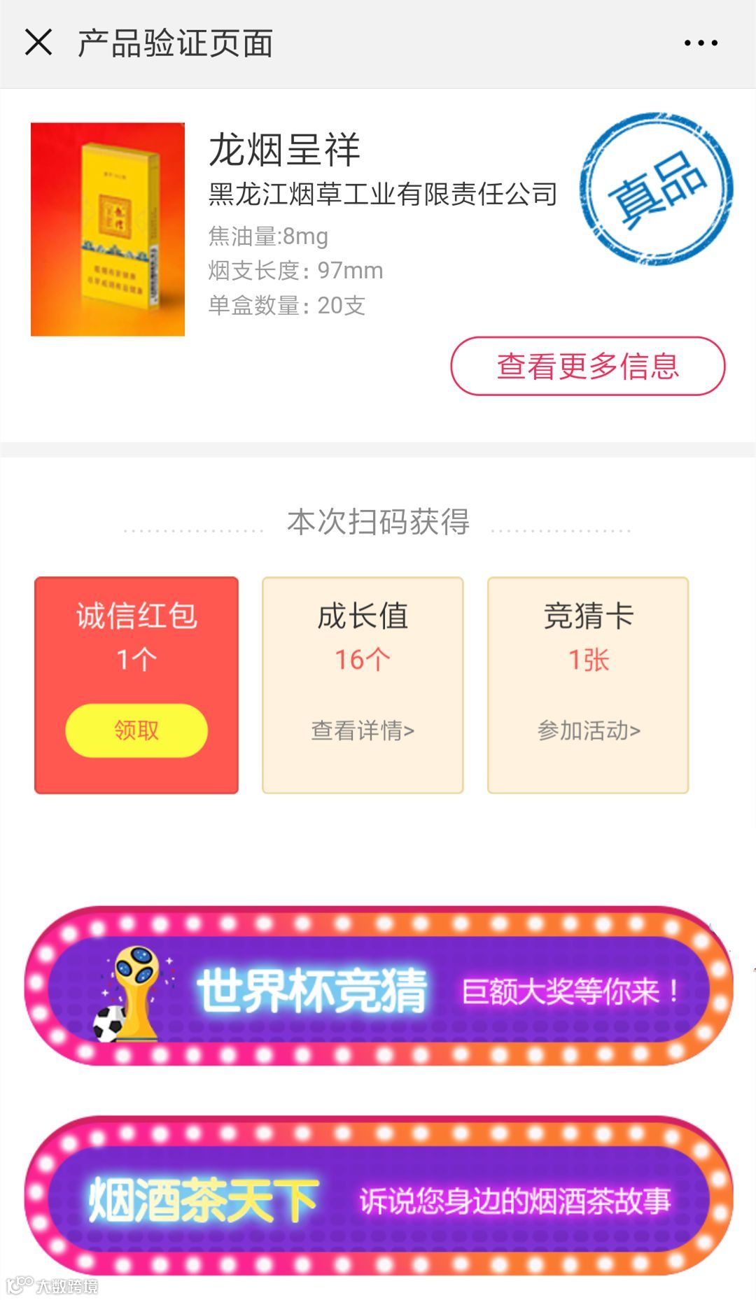扫描龙烟(呈祥)(金安)扫码验证真伪,点击“世界杯竞猜按钮”