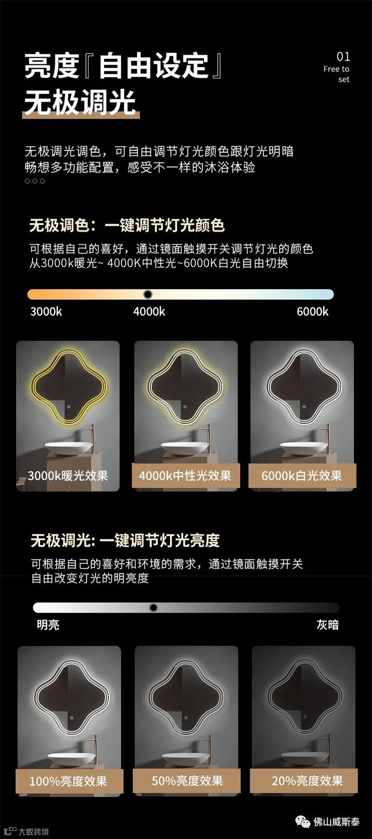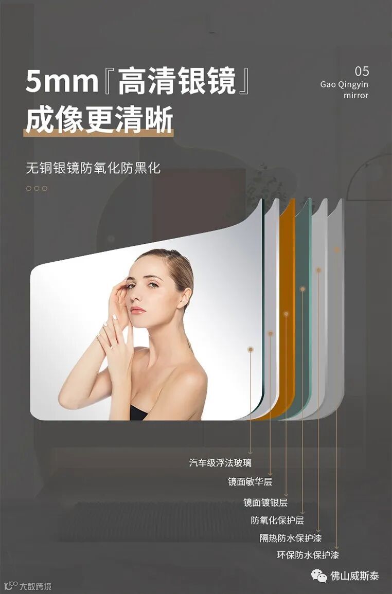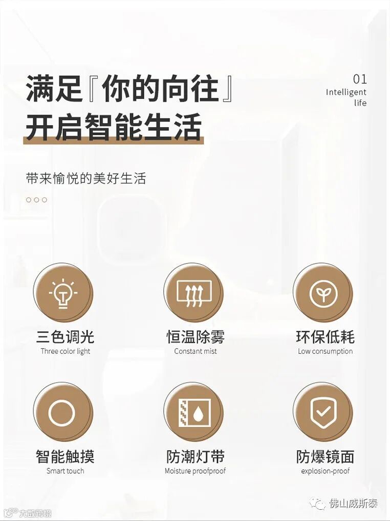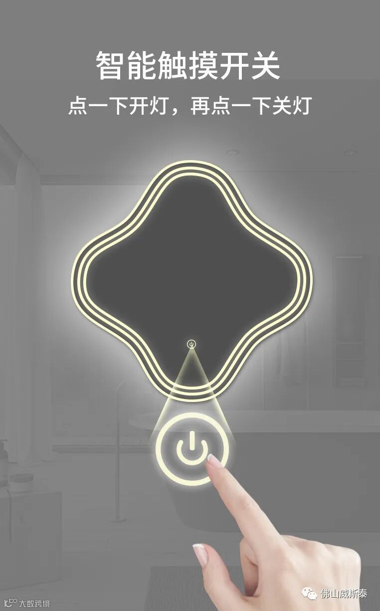 自带灯光,时间温度触摸开关,防雾