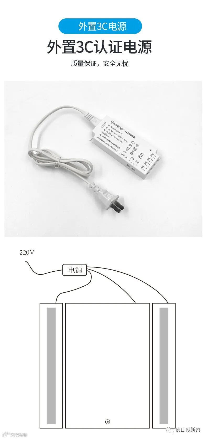 自带灯光,可做触摸开关,发热膜防雾