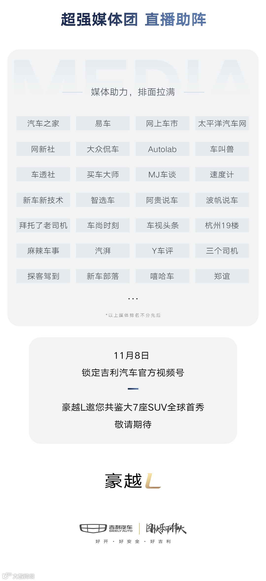 导读:大7座旗舰SUV豪越L全球首秀明日开启