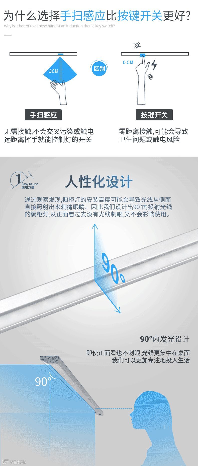 扫感应:感应距离小于5cm, 轻轻的扫过,亮灯,再横扫一次,关灯