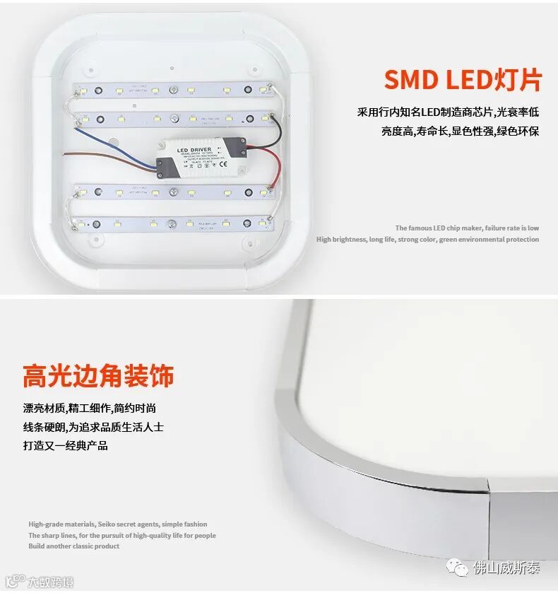 导读:高光边框,SMD LED灯片吸顶灯