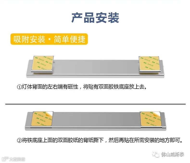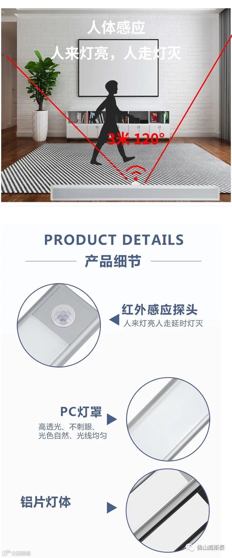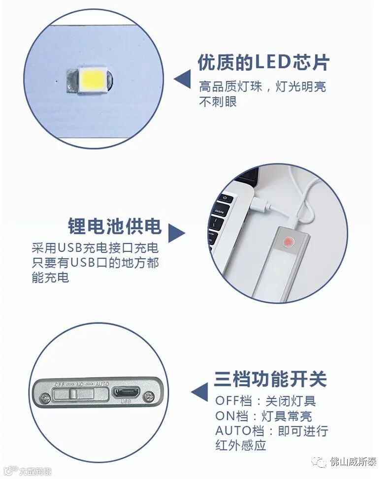 导读:全发光设计,没有光斑,效果漂亮。免接线,内置锂电池供电,采用USB充电口。底部磁吸设计,不用打孔,直接吸附安