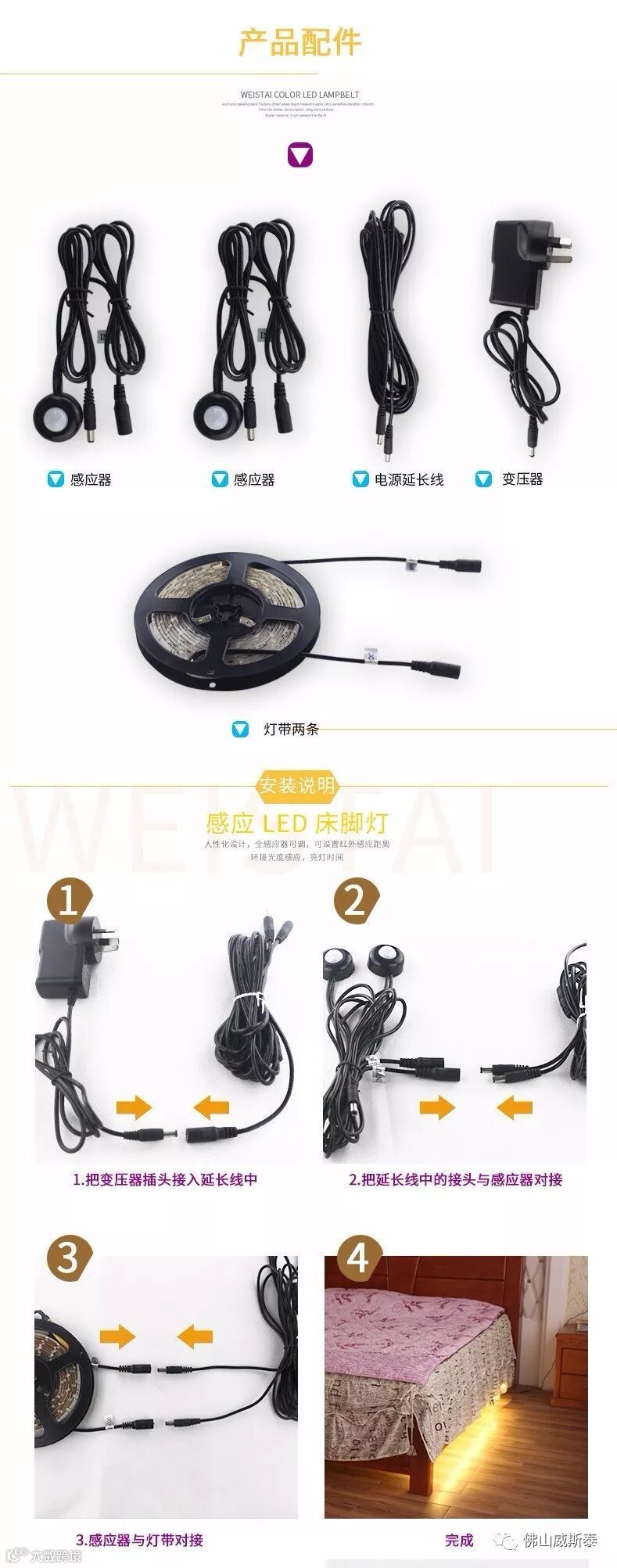 C:1个红外人体感应器,可调灯条点亮时间