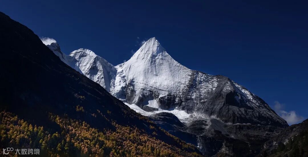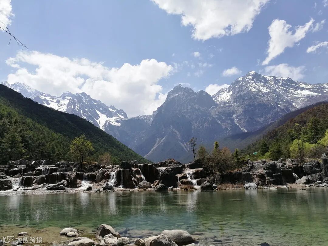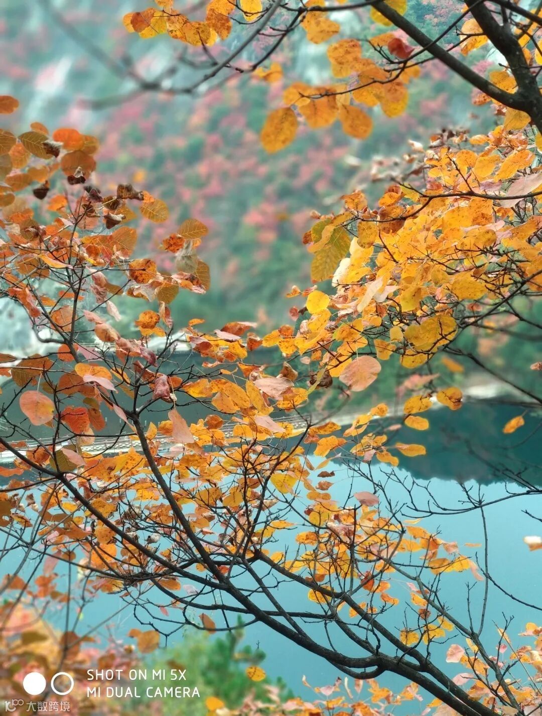 广阔的秋:碧绿的水面、幽静的山谷、雄伟的雪山和蓝天白云静静的织在这幅画卷上,静静的……