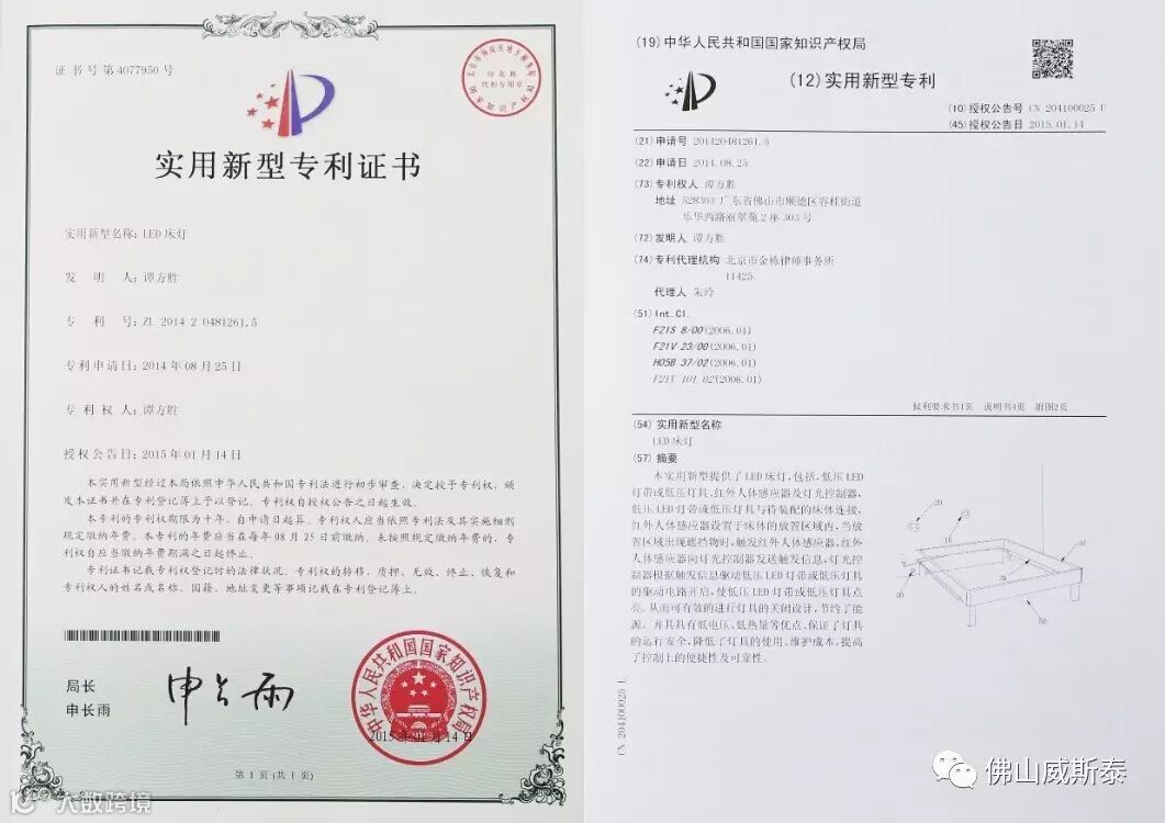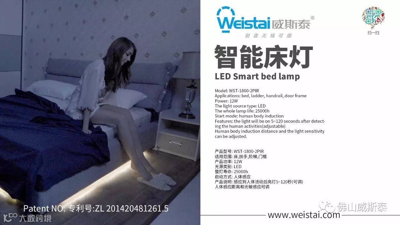 佛山威斯泰专利床灯---下床灯亮,上床灯灭;进房灯亮,出房灯灭;