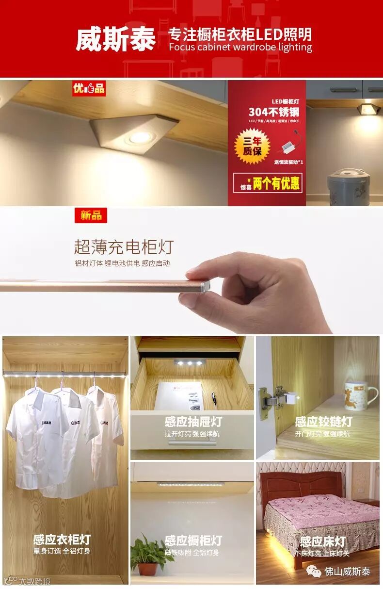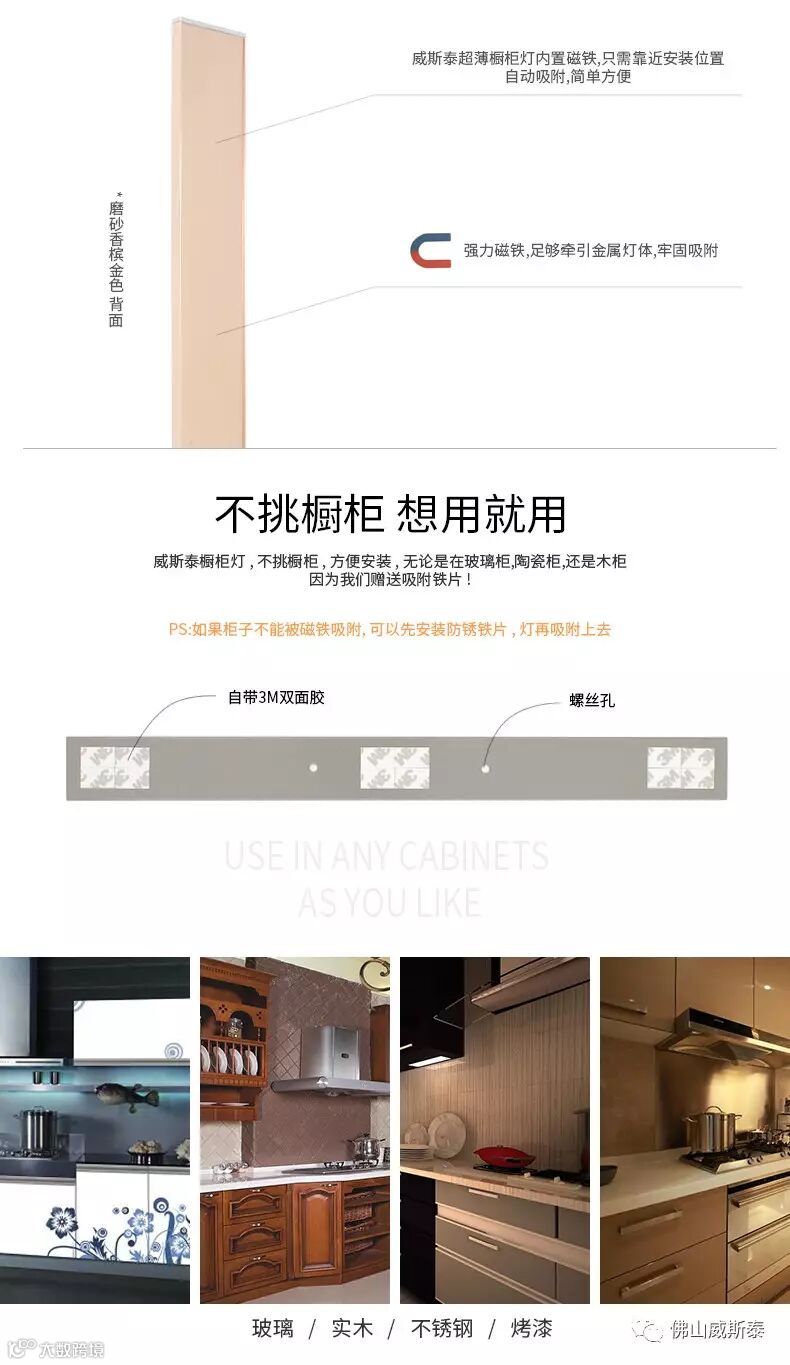 7 广泛用于橱柜衣柜 衣帽间 组合柜 电视柜 吧台 KTV夜场 展示厅 酒柜 书柜 壁 柜 抽屉 鞋柜 浴室柜 层板 镜前灯 床头床下 门头 楼道楼梯等