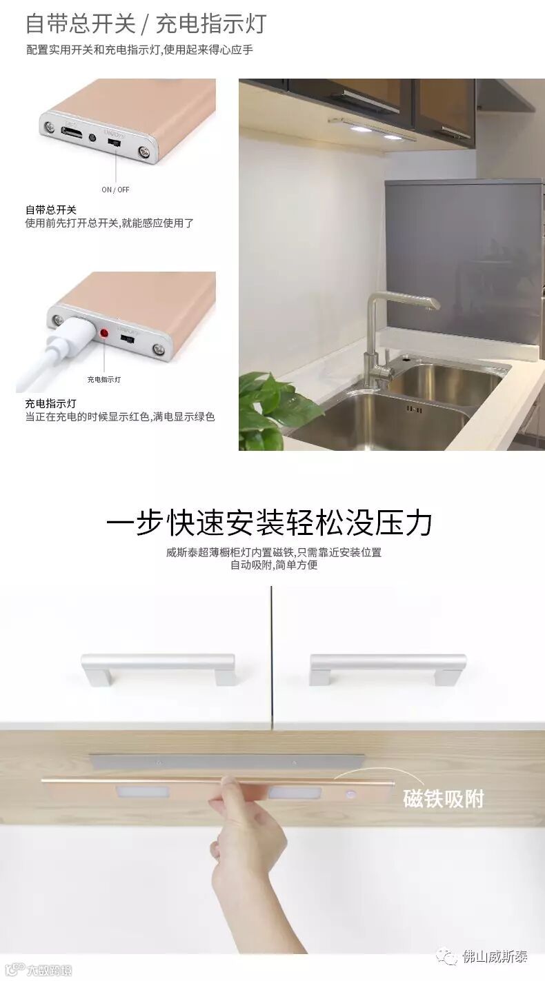 3 不用损坏家具,磁铁吸附,安装方便,方便取下充电。