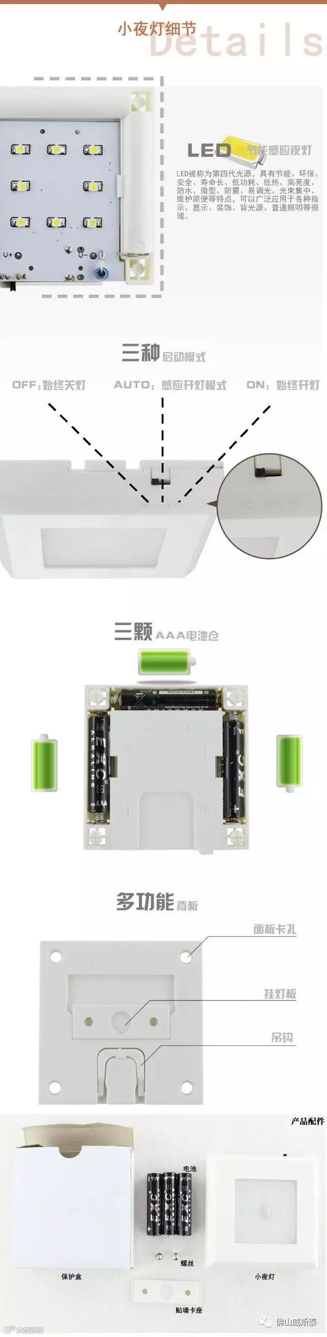 电池供电,安装方便,走到哪里。亮到哪里,人在灯亮,人走灯灭,节能环保。