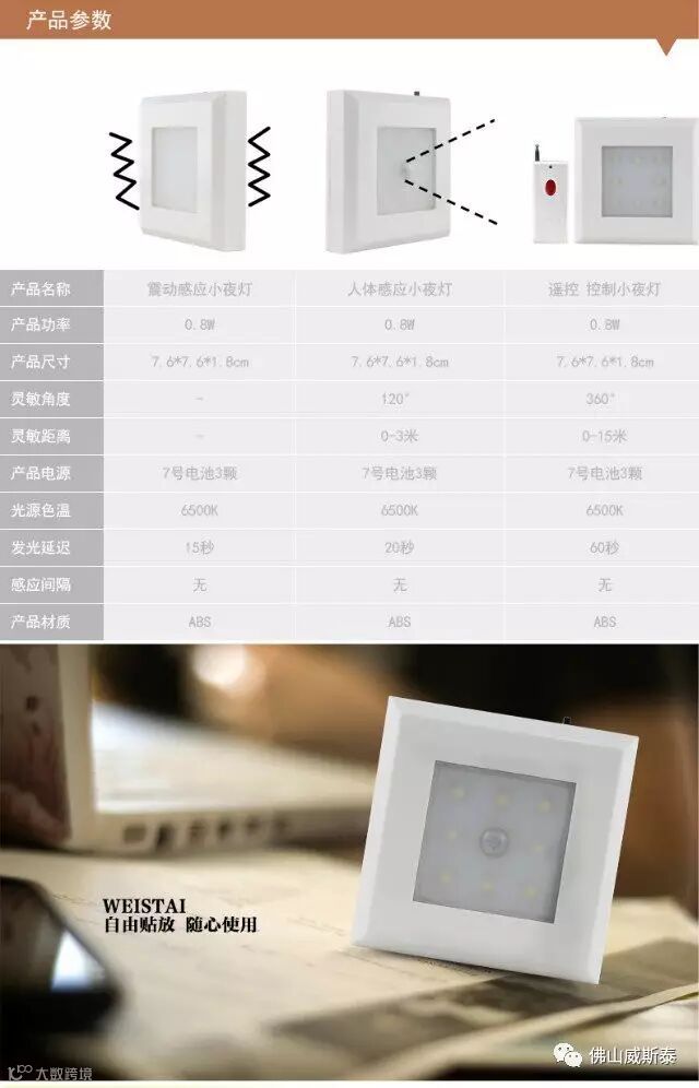 佛山威斯泰--LED多用途智能方形灯,使用范围广。可作为人体感应小夜灯、震动感应小夜灯、橱柜灯、衣柜灯、床头灯,LED抽屉灯,LED衣柜灯,LED橱柜灯,LED酒柜灯,LED展柜灯,LED专柜灯,LED门头灯,楼道灯等。