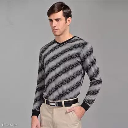 9月8日:柒牌斜纹长袖V领男士棉T恤