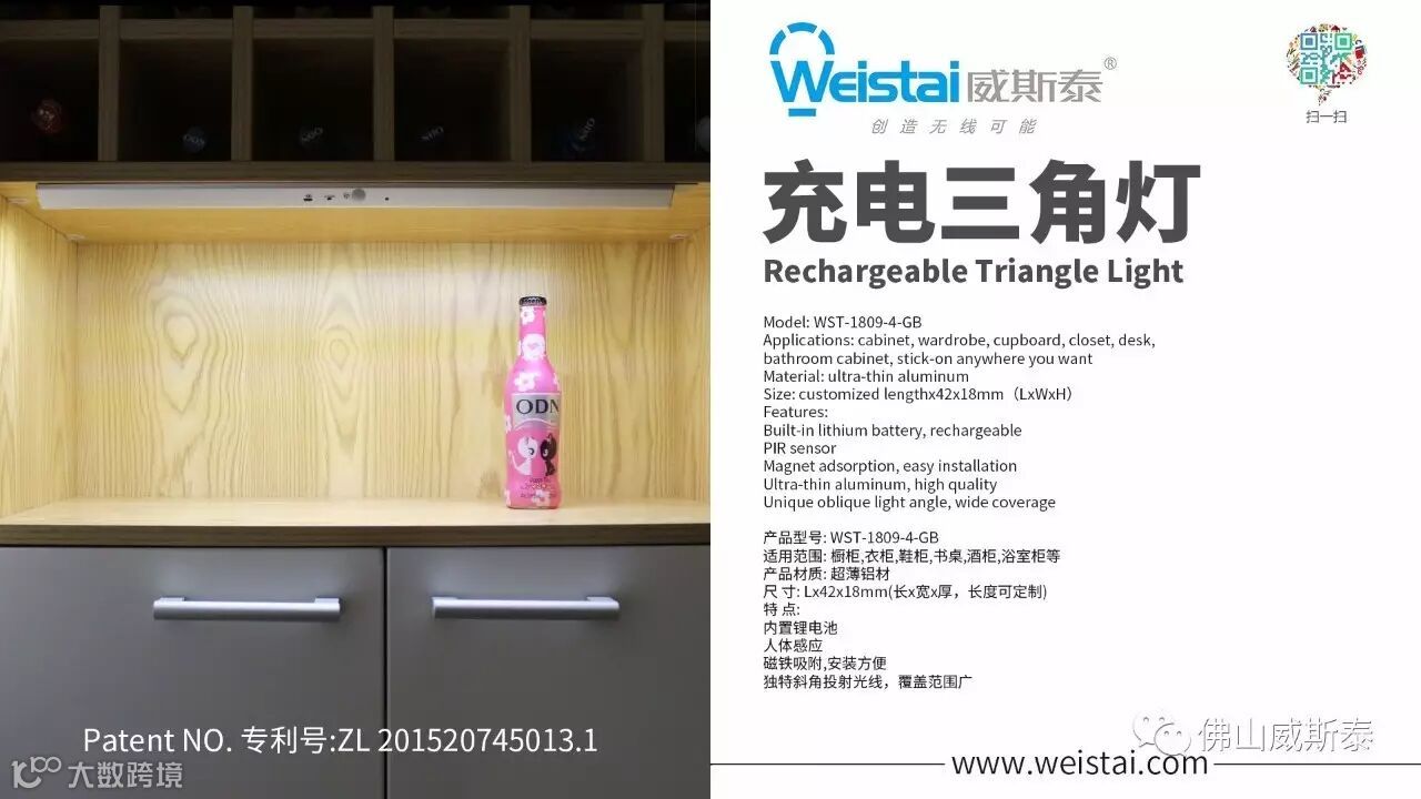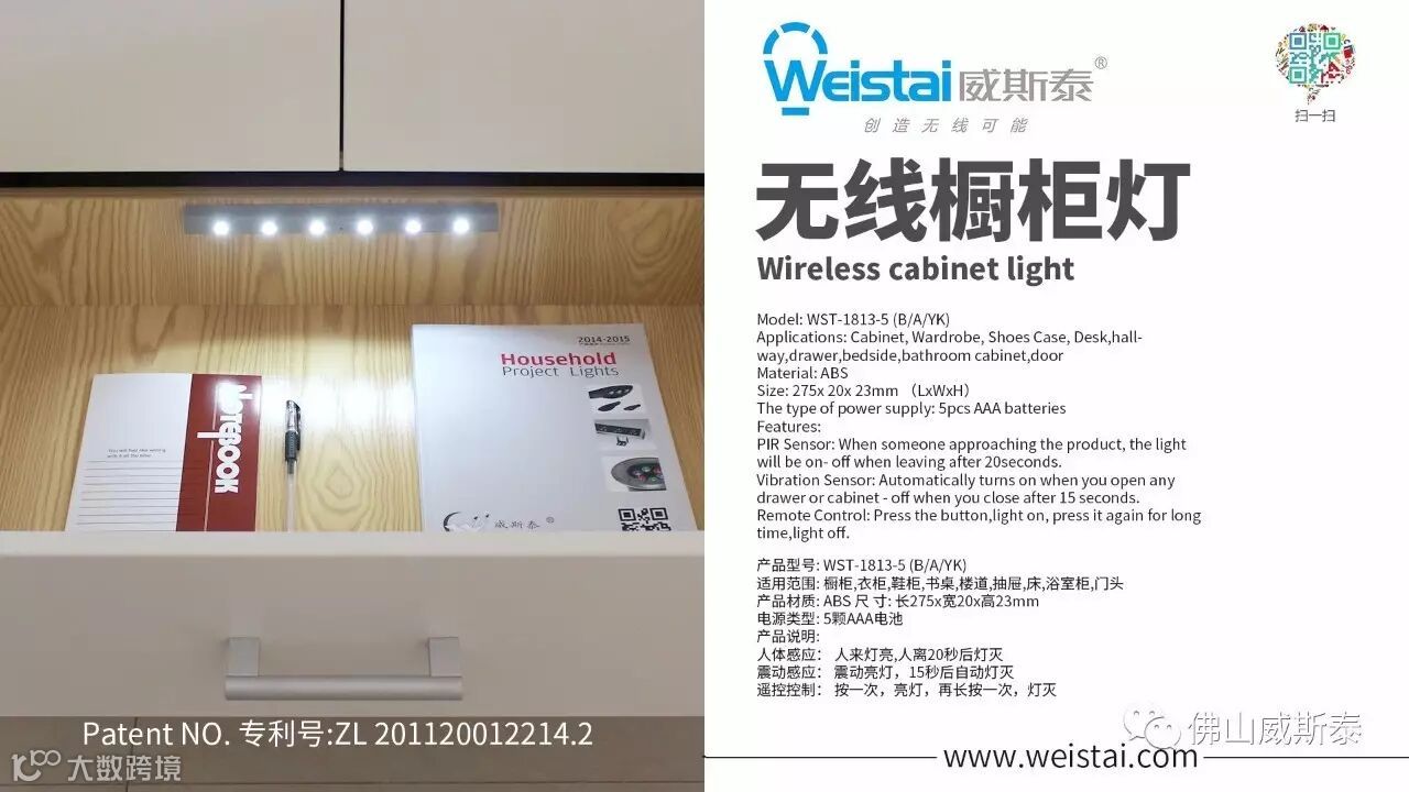 橱柜灯,衣柜灯,抽屉灯,铰链灯,楼梯灯,床灯, 层板灯, 镜前灯,无线智能感应灯(电池供电,低压安全,节能环保,不用电线,不用外接电源,不用损坏家具,安装方便,智能感应,产品新颖