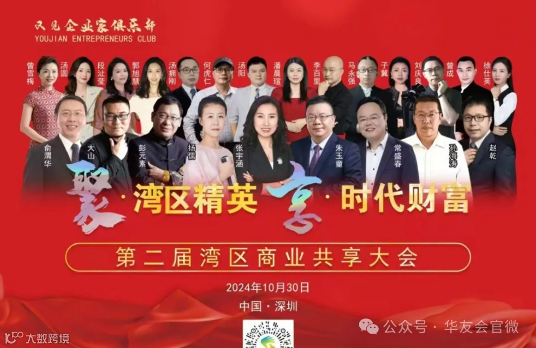 2024年10月30日,金秋送爽,深圳市南山区航天科技广场B座会议中心迎来了第二届湾区商业共享大会的盛大召开。延续首届精彩,大会群英荟萃,300多位来自不同地区的商业专家、商界精英、商协会会员在此共襄盛会,聚势谋远,探讨商业发展的新趋势与新挑战,并共同洞察商业智慧以及合作机会。华友会创始会长参加会议,并发表演讲!