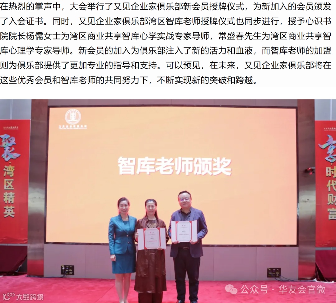 本次大会不仅展示了湾区商业的最新成果与创新思路,也搭建了一座连接未来、启迪智慧的桥梁,促进了企业家之间的深度对话与链接合作。华友会与又见企业家俱乐部的合作也会步入一个新的发展期!