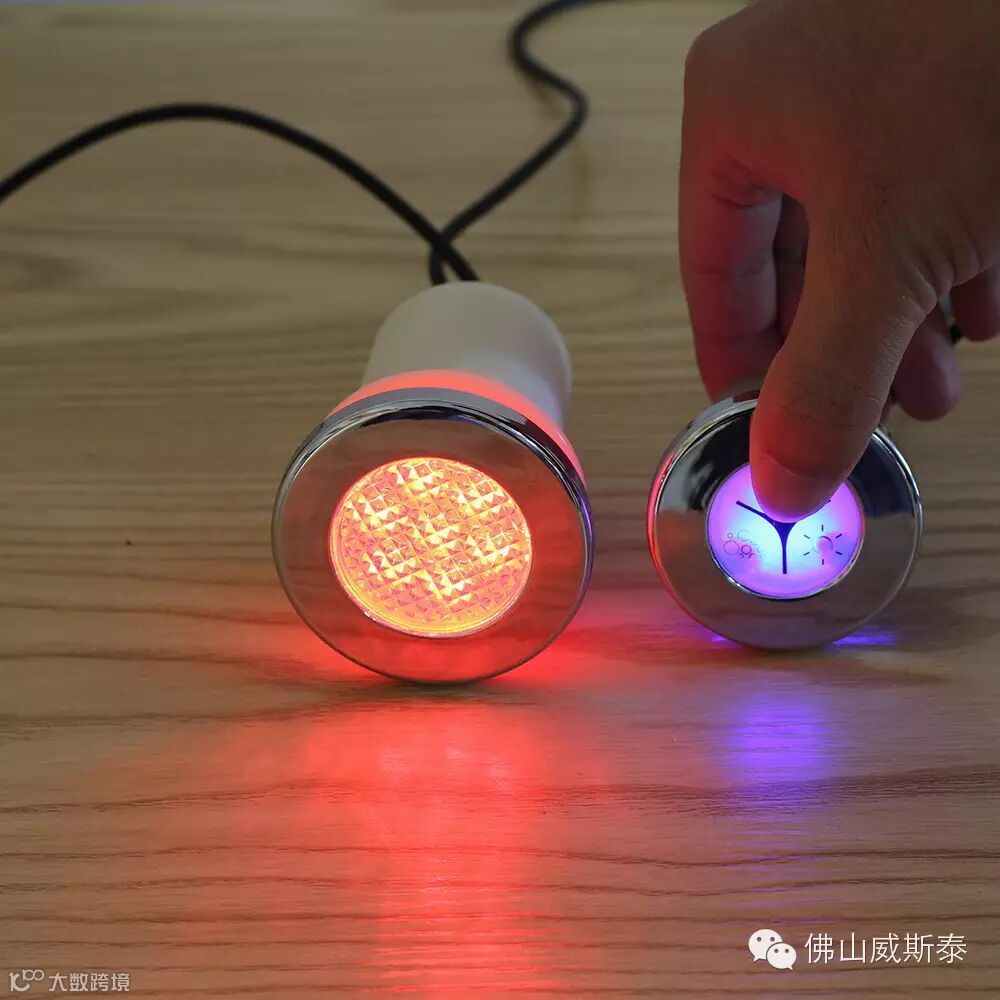 按摩缸手动灯光控制器:三功能按键,可以选择自动变色或者选择任意颜色,也可以选择关灯,还有气泡功能。