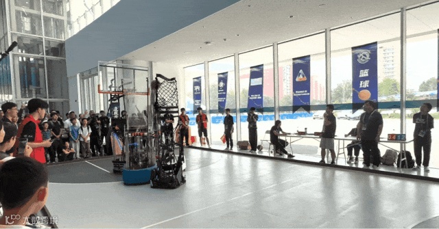 篮球比赛中,机器人可以灵活配合进行投篮动作,不过主要依靠轮式底盘进行移动。