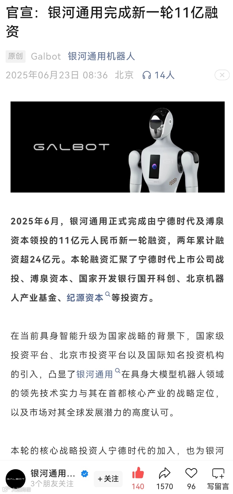 后续宁德时代将作为产业战略投资方,持续与银河通用机器人深化产业协同,为银河通用具身智能大模型在工业领域的技术落地与规模化应用提供关键支撑。