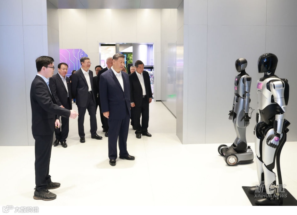 2025年4月29日总书记到上海考察并考察智元机器人以及其产品进展。智元机器人CTO彭志辉现场展示了智元灵犀X2、精灵G1、远征A2等机器人产品及相关场景算法,包含精灵G1清理桌面垃圾、灵犀X2骑自行车、以及汽车仪表盘装配等生活和工业场景应用。