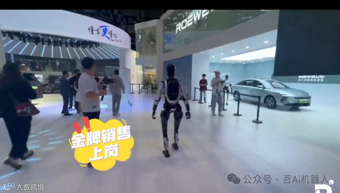 事件8、智元机器人远征A2交互服务机器人成为本届车展的“明星展品”,在上汽荣威、北汽、长安等车企展台担任“实习销售”,承担车型讲解、互动引导、英语交流等任务。