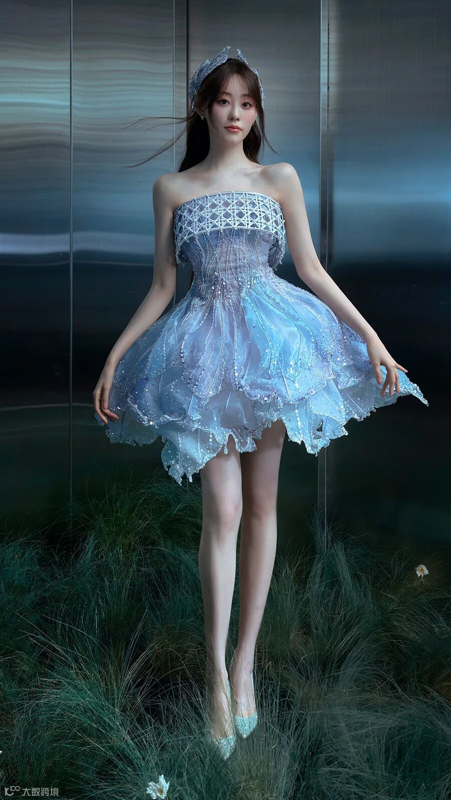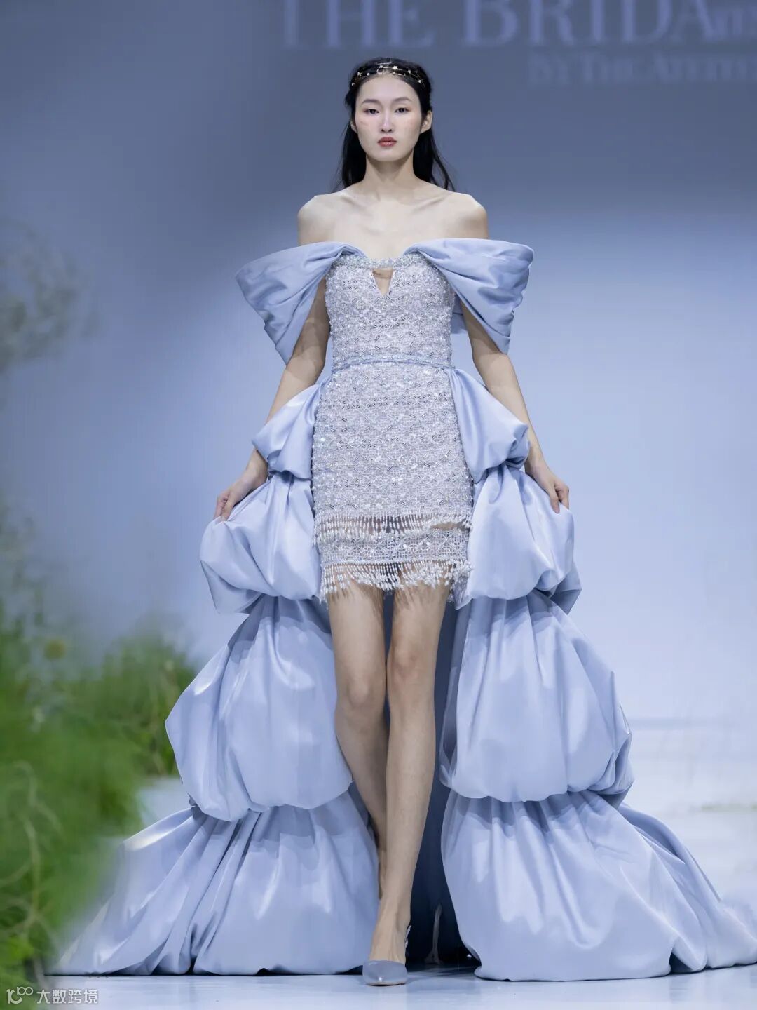 设计师运用立体串珠、刺绣、烫钻、缝珠等工艺,将各种工艺巧妙地分解并重新组合,创造出神奇的艺术效果。The Atelier旗下的Bridal系列一贯以奢仙瑰丽的色彩著称,如今因《造梦时空》的呈现多了些许空幻,在前滩31演艺中心传输魔法能量。