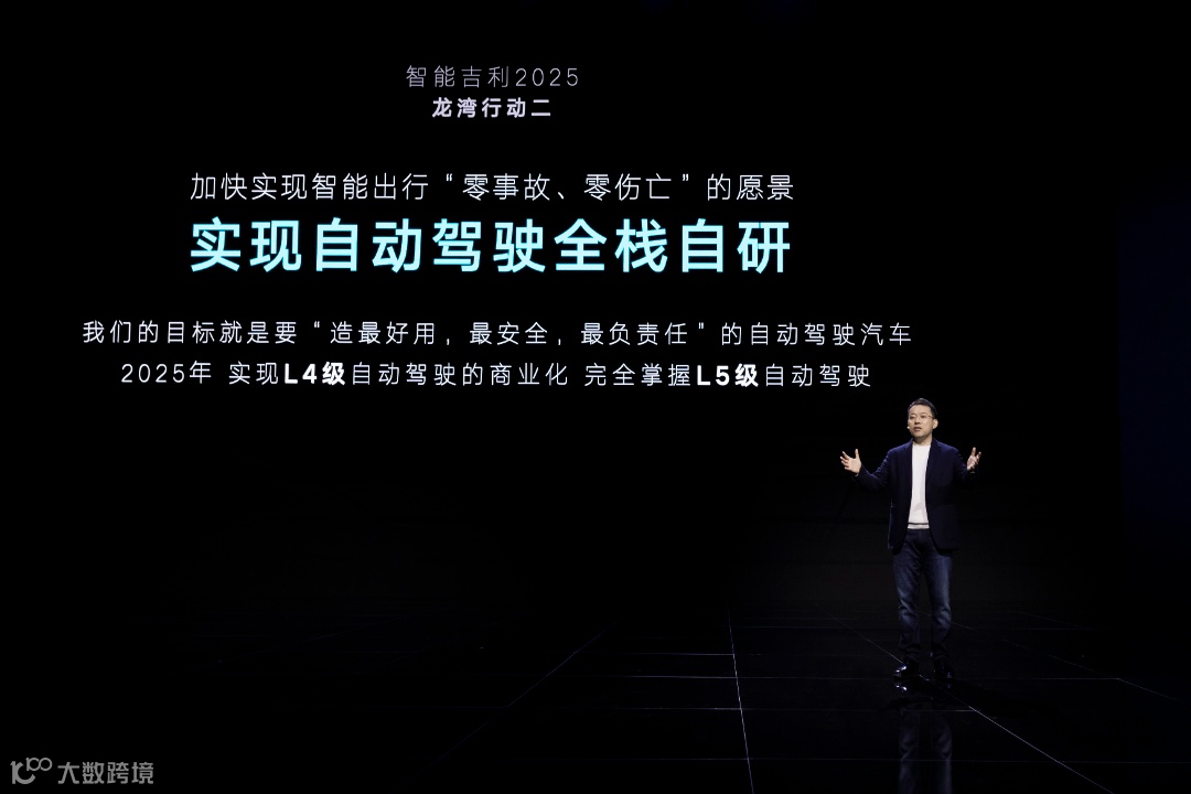 依托智能吉利科技生态,我们要实现在智能能源、自动驾驶、智能网联、智能座舱等核心技术领域全栈自研。尤其在自动驾驶上,我们的目标就是要“造最好用,最安全,最负责任”的自动驾驶汽车,做到“交付即安全”。