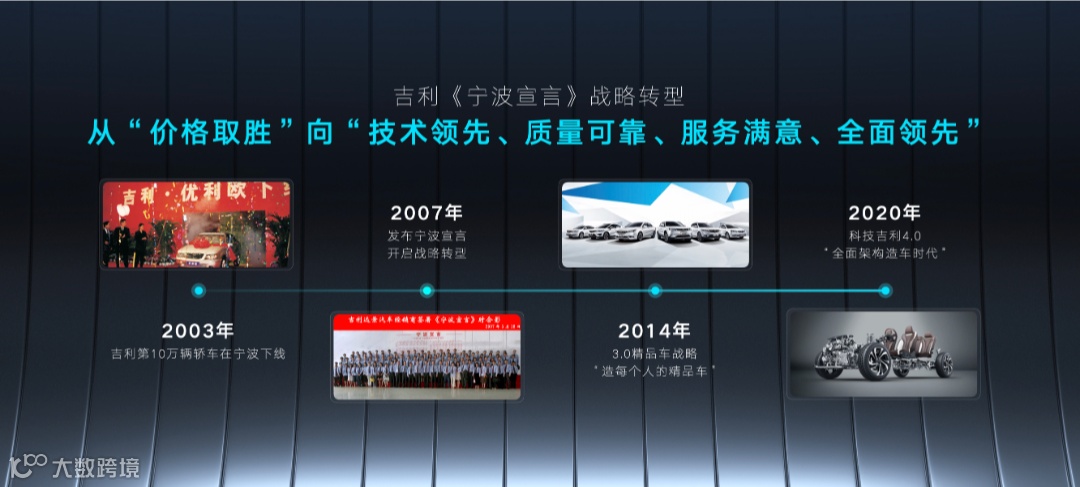 一路走来,巧合的是,吉利每一次战略转型,都充满着了挑战,而每一次挑战,都是一次巨大的机会。当然,每一次转机的背后都是我们不断的打基础,不断的练内功,以及我们对“技术创新”的坚持,对用户体验的预判和满足,对研发坚定不移的投入,这些都是我们形成后发的力量。