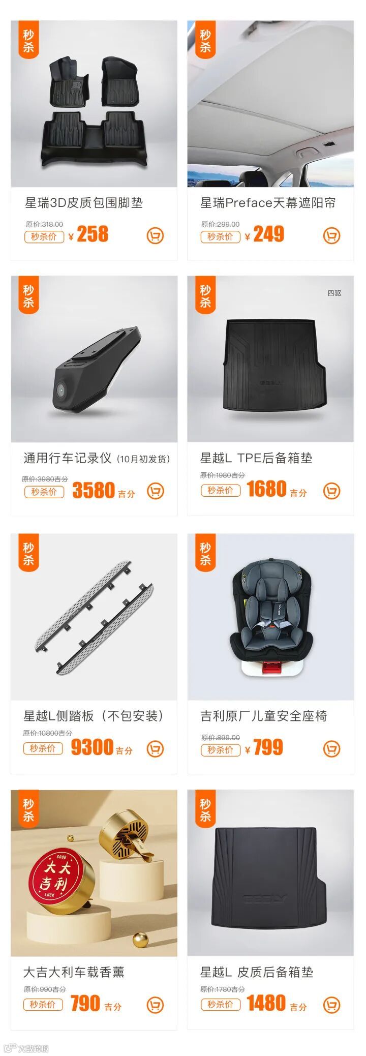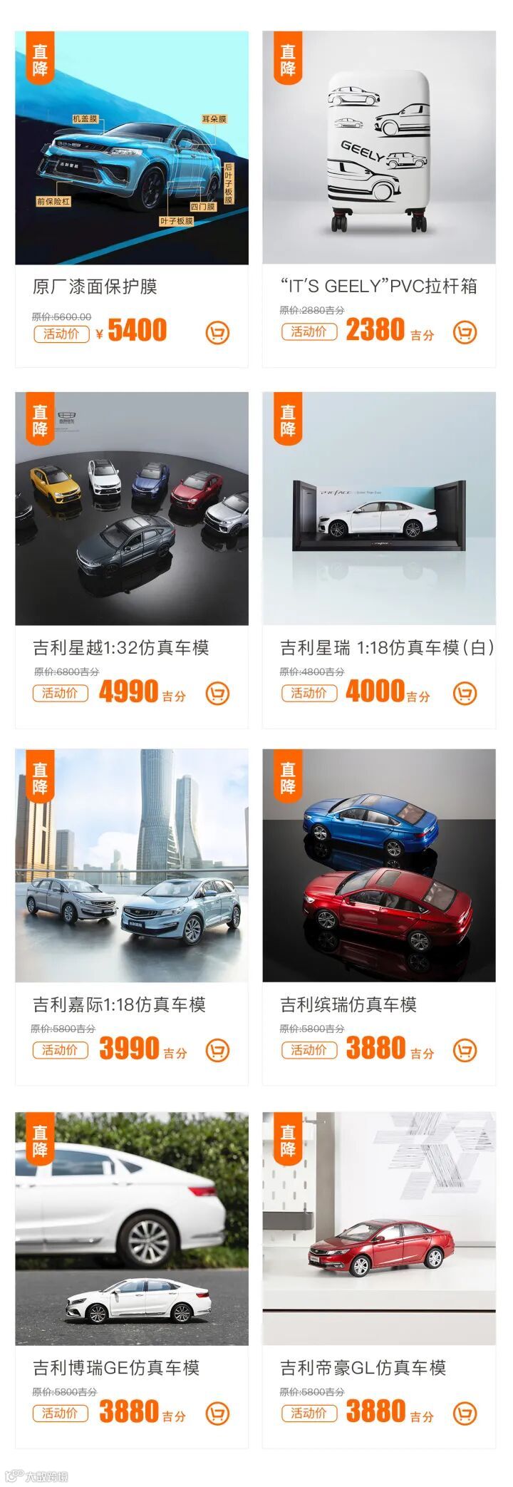 以上活动详情请登录吉利汽车APP-吉分商城。