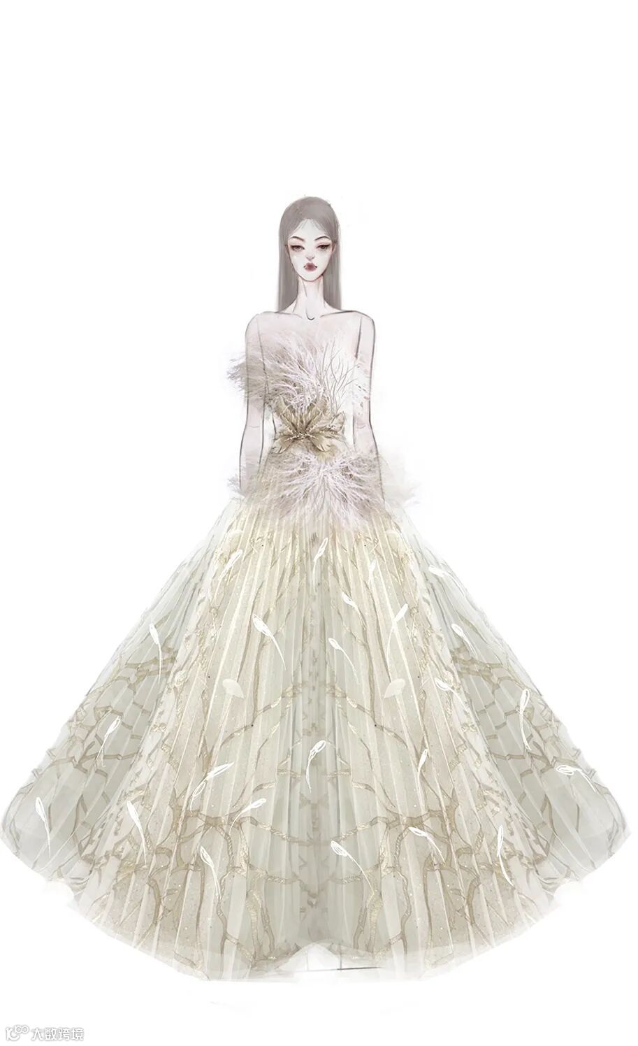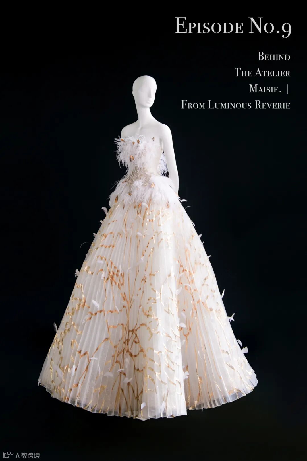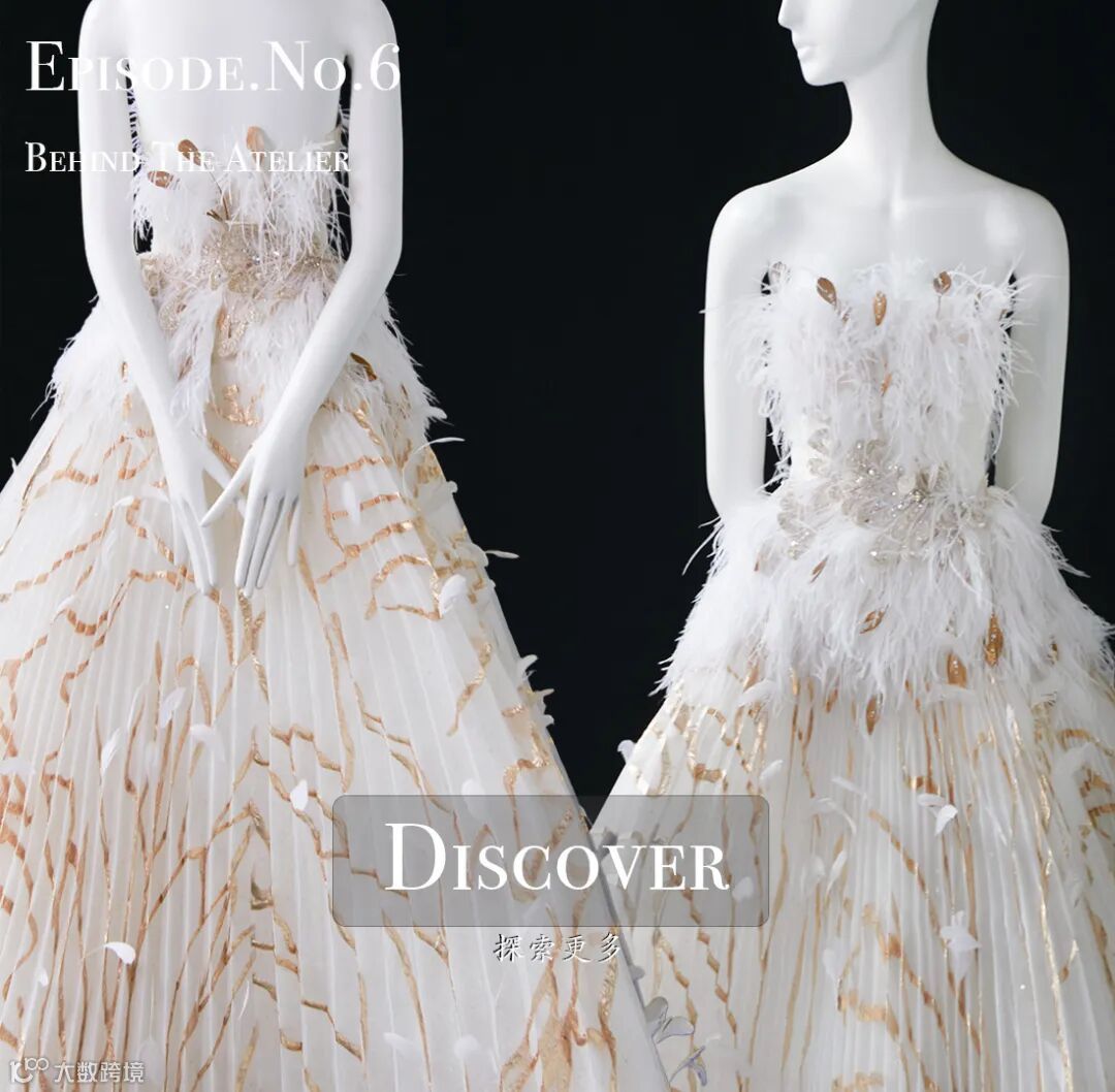 Behind The Atelier 设计之下,第9期,与大家分享一则金梦羽事,设计灵感来自古希腊象征幸运的金色羽毛,轻盈地洒落在礼裙之上,弥漫着清新而充满希望的造梦之味。