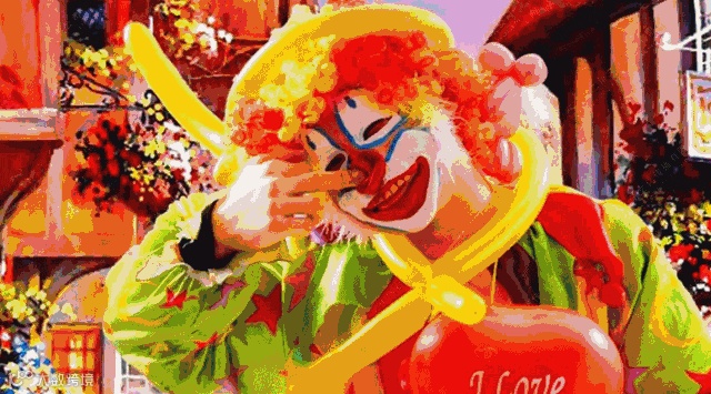 搞怪小丑沿途派送缤纷气球