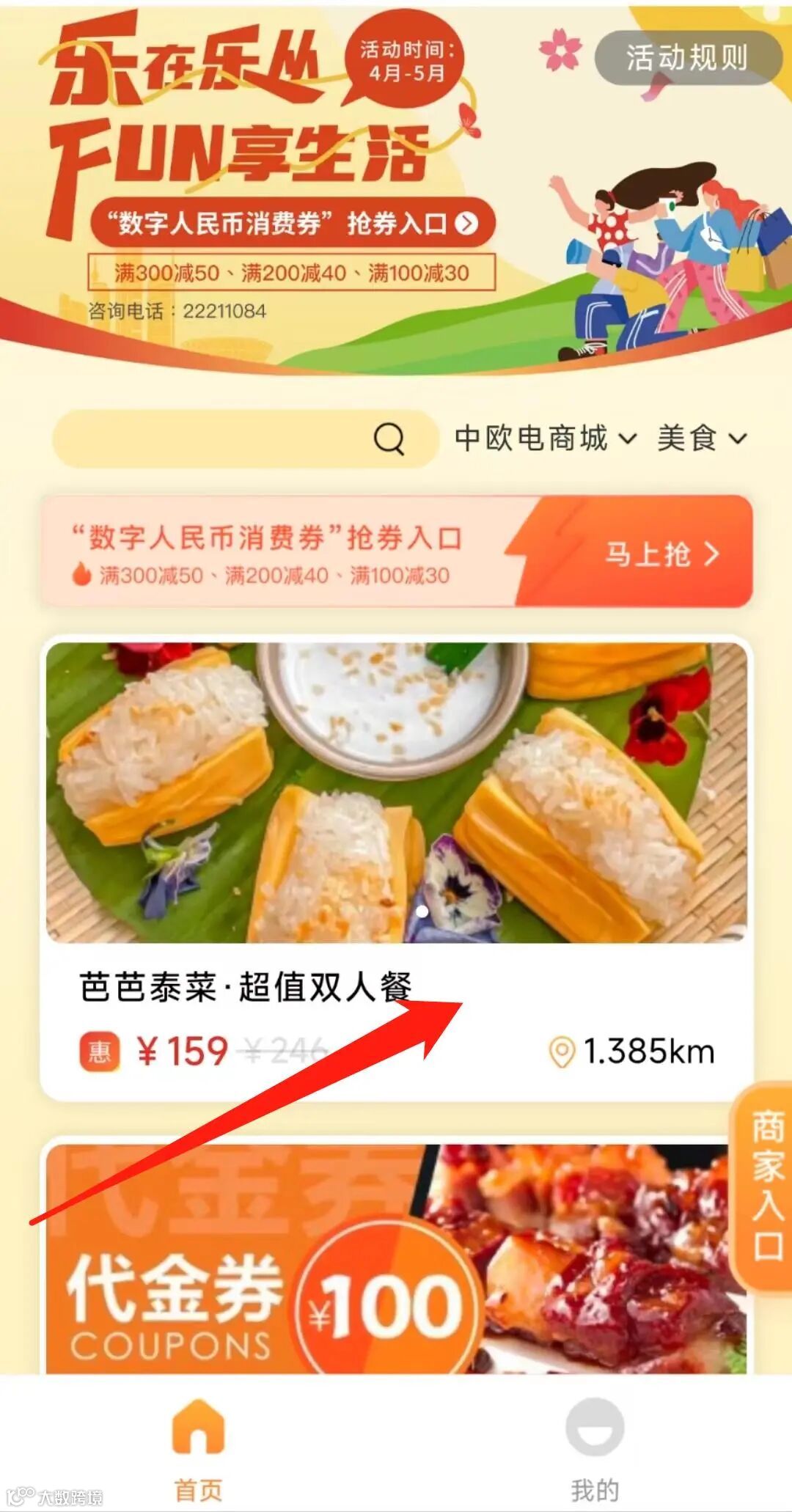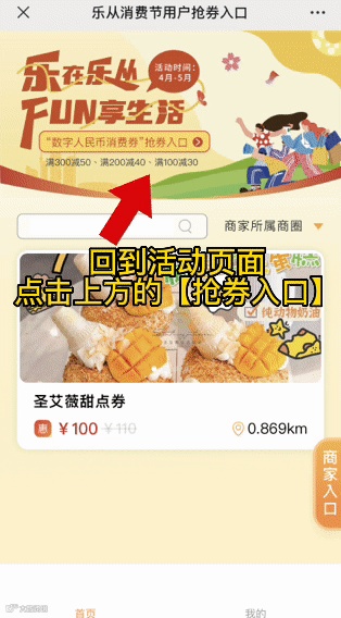 在“数字人民币”App,注册“建行数字人民币钱包”,确认开通建行数币钱包,并实名认证升级为【二类钱包】后,回到活动页面,点击最上方的【抢券入口】,输入手机号等信息,即可参与满减券的抽奖!