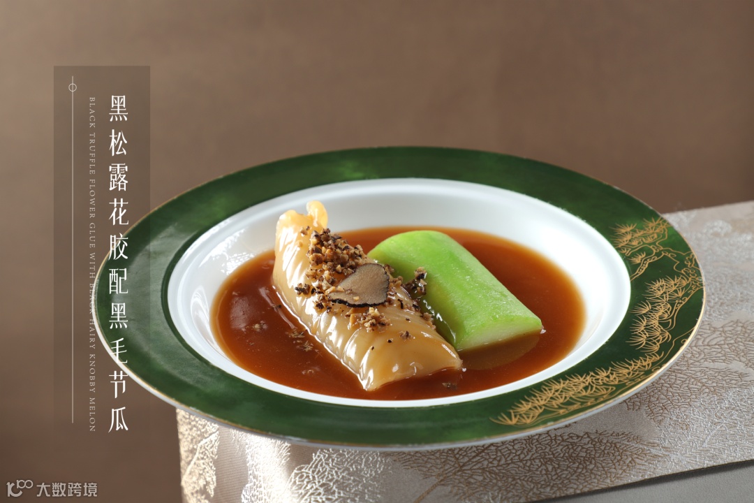 花胶,有着“海洋人参”的美誉,缀以馥郁黑松露,与黑毛节瓜共赏,醇香扑涌,精粹交融一体,在时间温存下,各自的鲜美淋漓尽显。