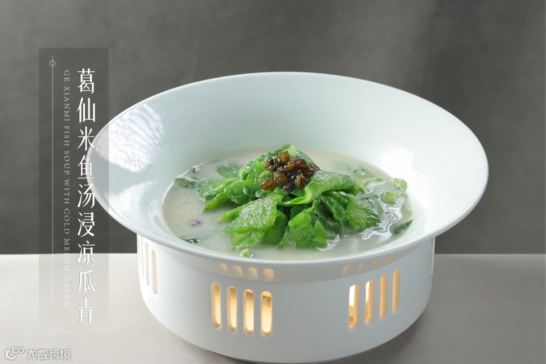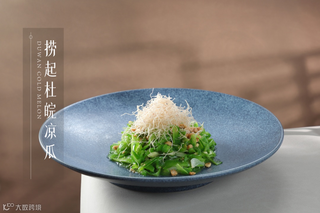 心旷神怡的绿,点燃舌间期待已久的鲜活。杜皖凉瓜配以捞起的形式食法,将凉瓜的清新回甘恰到好处地表达。