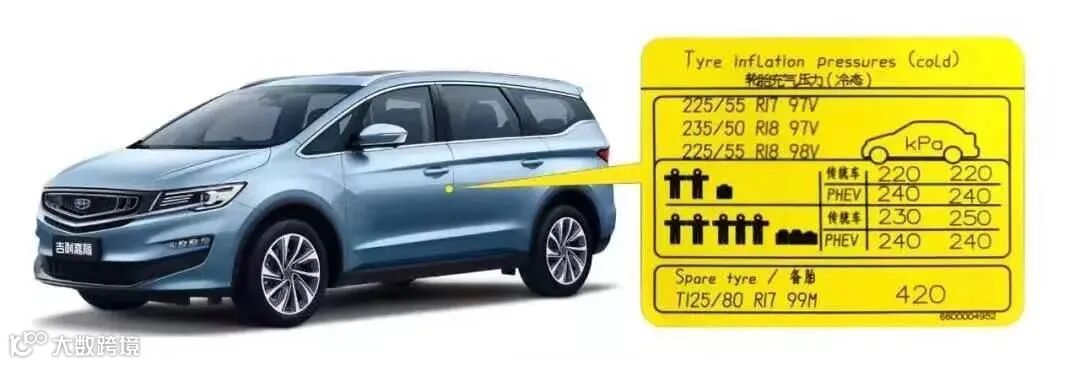 *注:标准胎压可在驾驶室车门B柱查看。