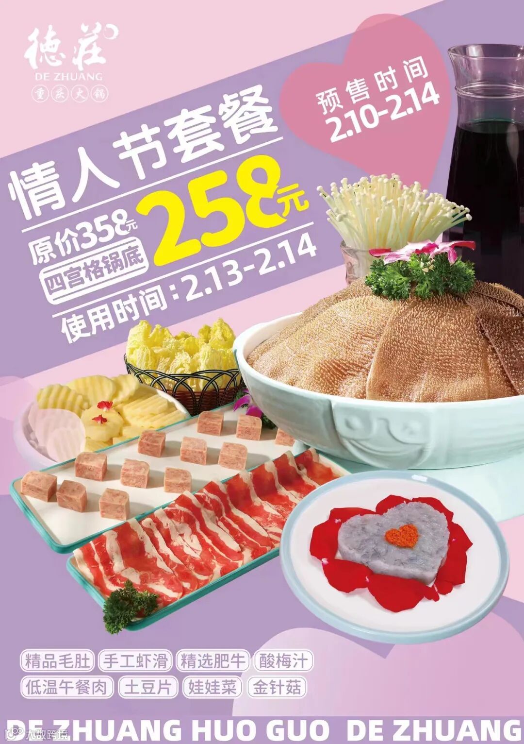『精品毛肚、手工虾滑、精选肥牛、低温午餐肉、土豆片、娃娃菜、金针菇、酸梅汁』