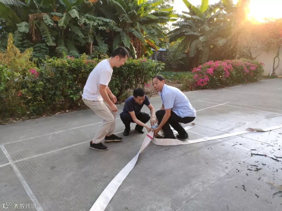 干粉灭火器培训结束后,又进行了消火栓喷水灭火演练。多名员工现场参与掌握消火栓的连接和使用技巧。