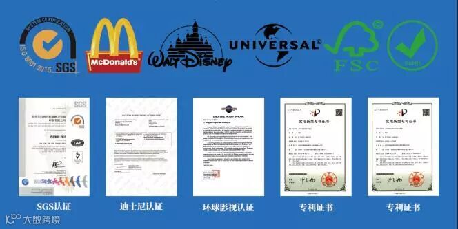 工厂经过多年的发展与开拓,规模日益发展壮大。我们拥有从设计制作,工程研发、生产制造、产后加工、品检、物流配送、售后服务等一套完整的优质服务体系,及优秀的经营管理团队。公司已通过SGS ISO9001 : 2015 国际质量体系认证,FSC环保认证,RoSH环保认证,产品质量符合各国安全出口环保标准。承蒙国内外客户的大力支持,目前已有许多国际著名品牌定点授权我公司生产,并且是通过全球迪士尼FAMA认证验厂,麦当劳验厂,环球影视验厂的供应商,是各行业值得信赖并具有实力的合作伙伴。