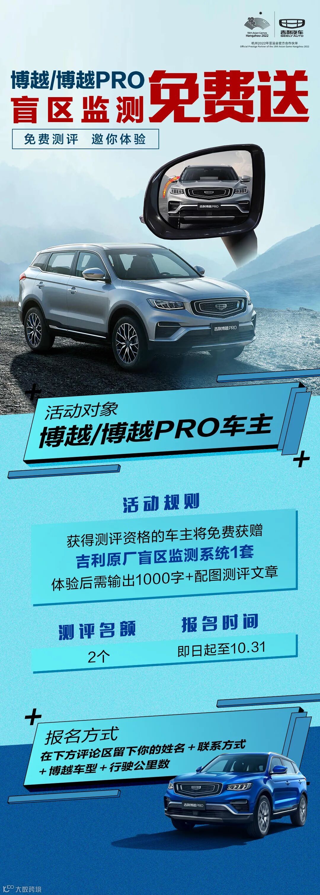 获得吉利原厂盲区监测免费试用机会