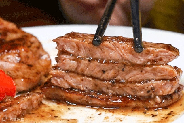 来到潮牛大叔,肯定要先吃牛肉。牛扒是适宜入口的小块,煎至外焦里嫩,口感劲道,越咬越多汁;