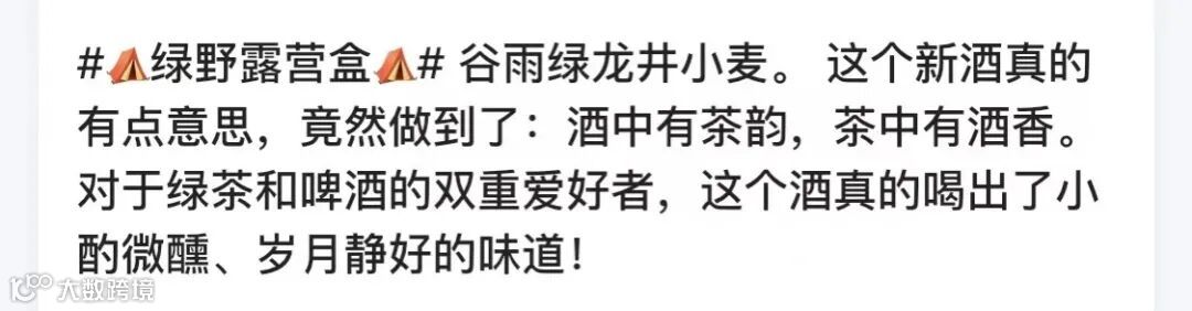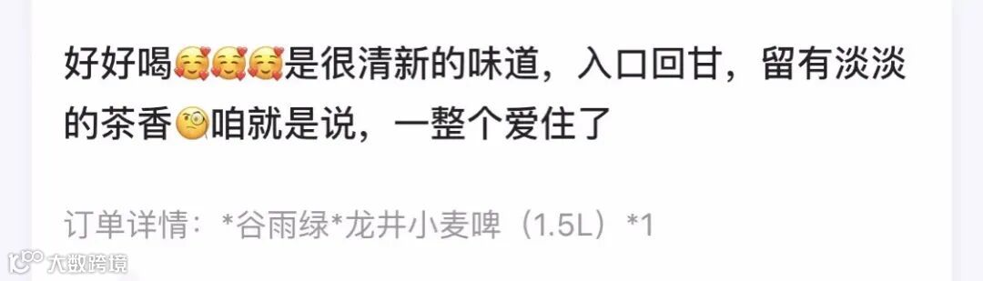 另外也顺便向大家安利两款适合酷暑天气的新酒:一款是美团和门店中均以上架的谷雨绿龙井小麦,非常消暑解腻,和各种宵夜都能组cp: