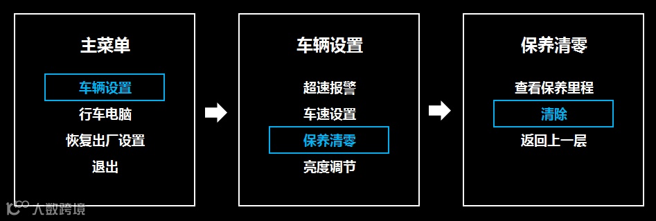 当行车电脑出现保养提醒时,可进入行车电脑设置界面,按照下图所示清除保养提醒。(例:若出现了保养提醒,行车中又提示未系安全带,此时“三角叹号”就会出现了)