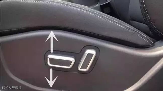 按照箭头的方向,上下拨动开关前端可进行座垫(椅)的高度调节,调节至合适位置时松开调节开关即可。
