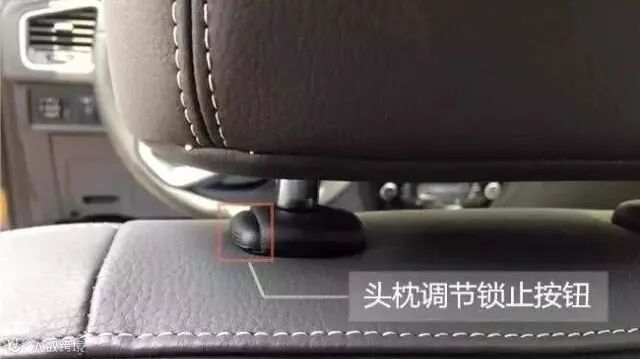 第一步:按住此处的调节按钮,可以进行头枕的高低调节。