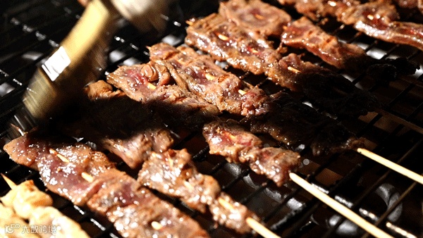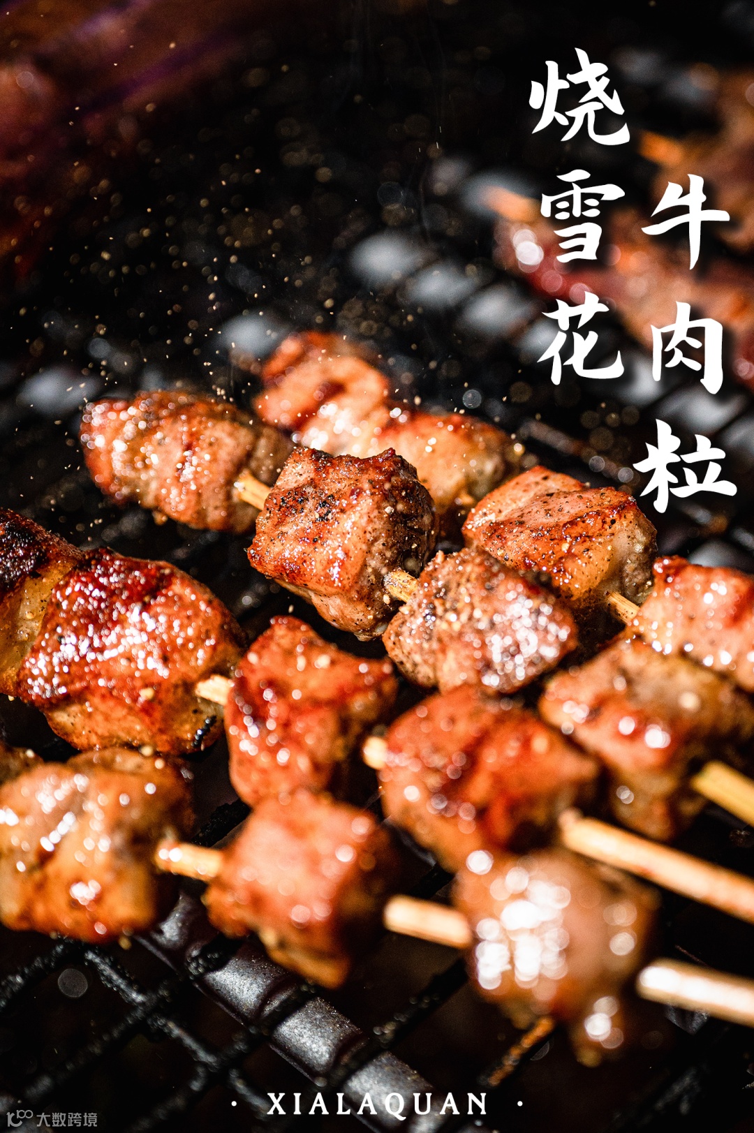 每桌都要点上十来串的雪花牛肉粒,放在烤盘上滋滋作响,任由脂香四散,翻面再撒烤粉轻轻提香,摄影师不争气的口水差点从口中流到烤盘上了!