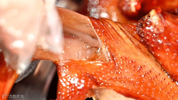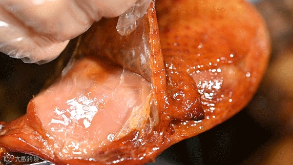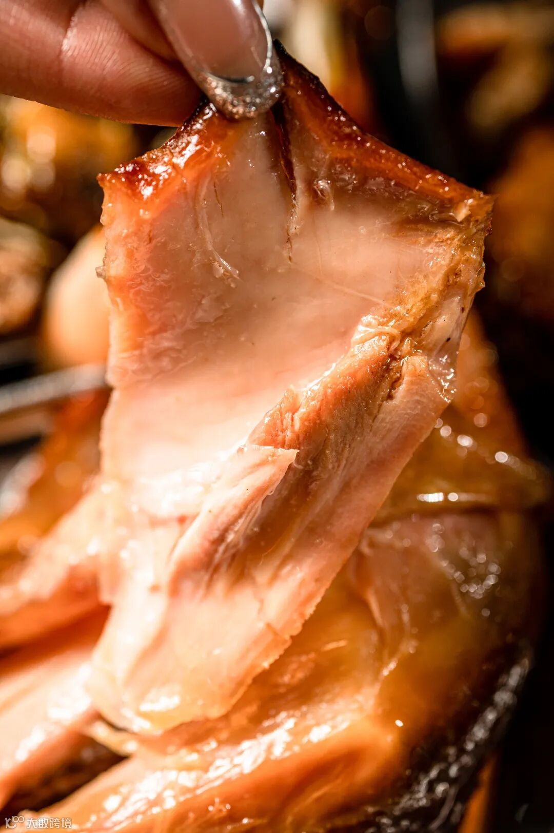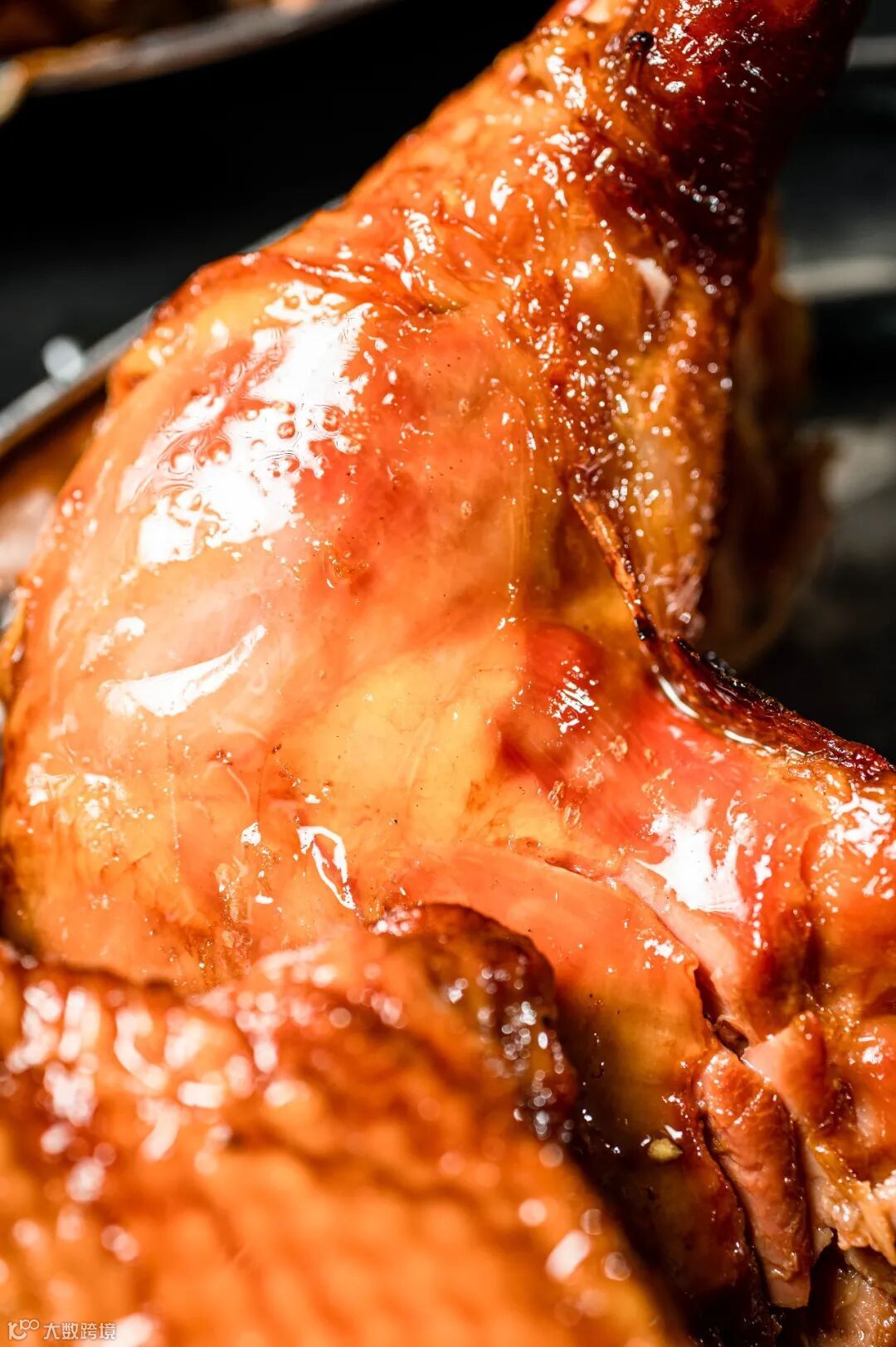 轻轻撕开焦脆的外皮,香甜蜜汁早已渗透进鸡腿的每一处肌肤,皮微焦肉嫩滑,汁水还疯狂飙出,就这一口下去已经上头!