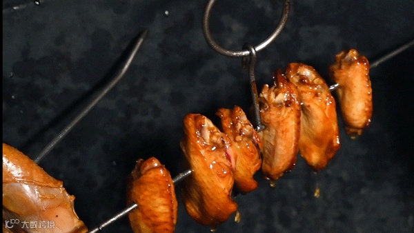 同样在窑炉吊烧着烤的鸡翅,相比在烤炉上烤外皮会更焦脆,被逼出的蜜汁肆意滴落,上桌后直接手撕着吃更香!
