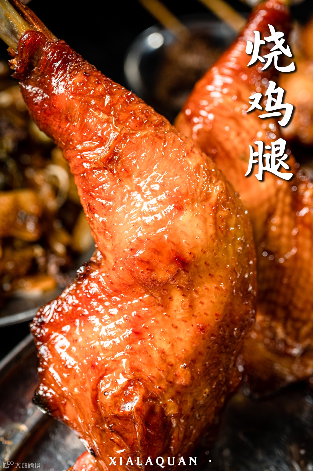 一只就有手掌这么大的烧鸡腿可是做了十几年的当家头牌,被炙烤后的色泽金黄油亮,油脂与烧烤汁融合的香气一起弥散开来,实在诱人!